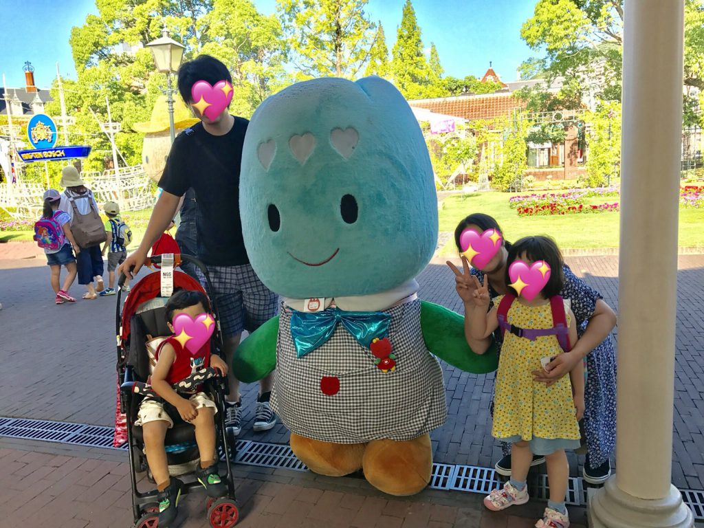 入り口ゲートをくぐると、大好きなチューリップのキャラクター【チューリーちゃん】がお出迎えしてくれていたので早速家族で記念撮影を撮りました!