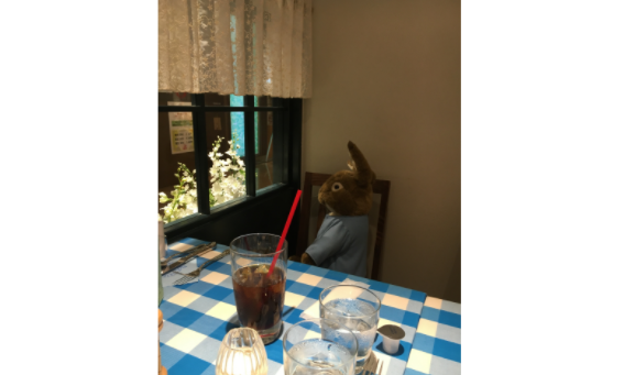 席に着くと、ピーターラビットのぬいぐるみがお出迎えしてくれました!